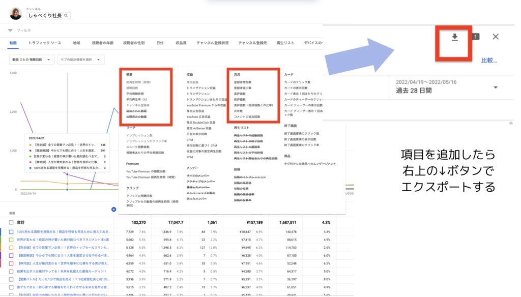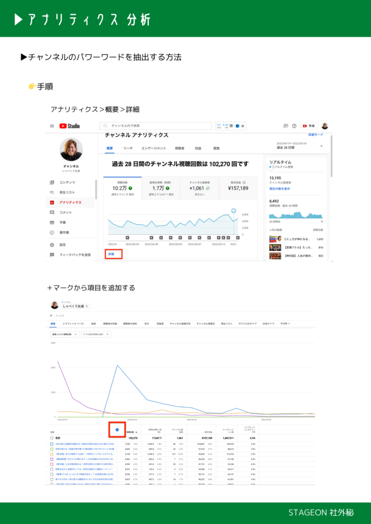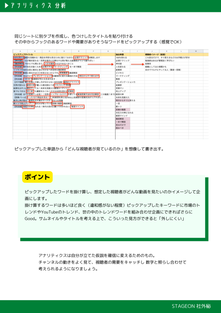 (関連ナレッジ:【MAN05】YouTubeチャンネル運営のための要因分析方法マニュアル)