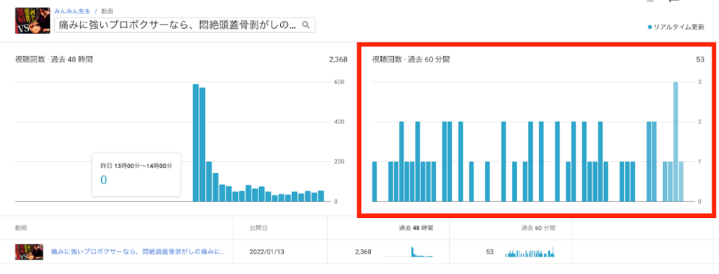 ▼ 動画ごとのリアルタイム視聴数(過去60分)