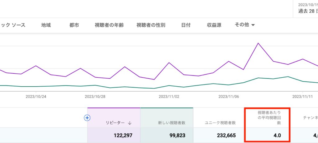 この「視聴者あたりの平均視聴率」が1か月間で「2回」を切っている場合、視聴者がチャンネルに興味を失っている可能性があります。