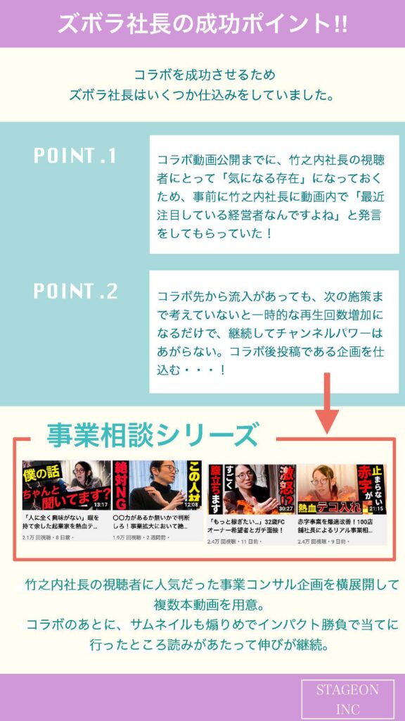 - 竹之内社長(コラボ相手)の視聴者にも刺さる企画を継続的に投稿