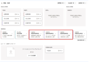・ログインができたら、ホームから自分の所属部署の経費事前申請を選んでください。
