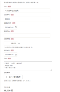 ※経費精算で支給できるのは承認が降りている金額が上限になります。