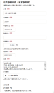 ※来社交通費はひと月25,000円が上限のため25,000円を超える場合は経費費用は25,000を入力してください。