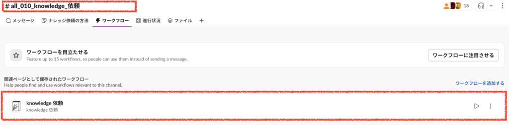 - Slackより #all_010_knowledge依頼チャンネル に参加し、ワークフロータブから「ワークフローを開始」を選択する